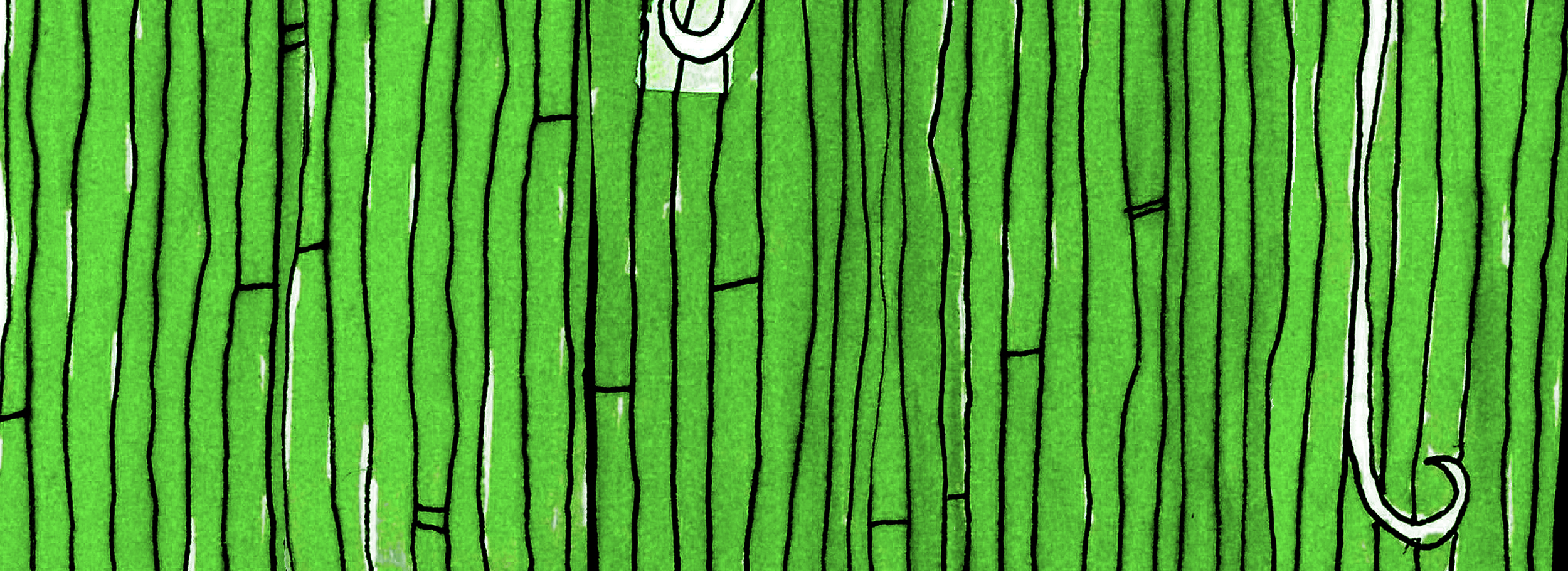 A comic-style drawing featuring a character with spiky hair exploring a surreal, giant yarn-like environment with twisting structures and spiral shapes.